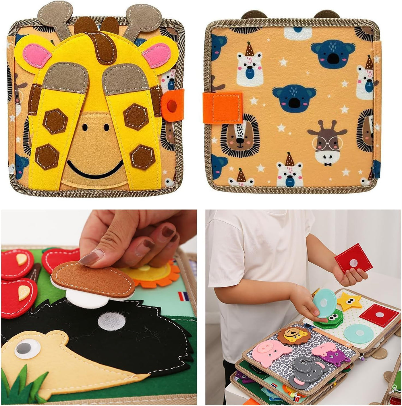 Le Livre d’Activités Montessori en Feutre transforme chaque page en petite découverte. L’enfant manipule des formes, des éléments en feutre et des textures différentes qui stimulent naturellement sa curiosité. Chaque activité encourage l’exploration et l’apprentissage par le jeu.
